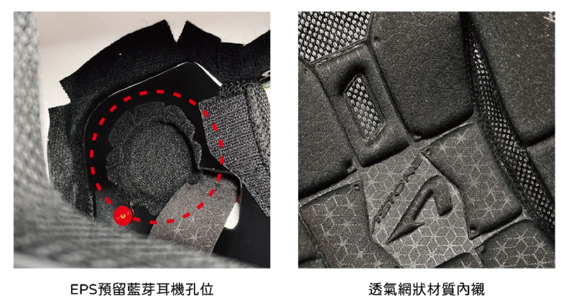 > 貼心眼鏡溝設計與預留藍芽耳機孔位