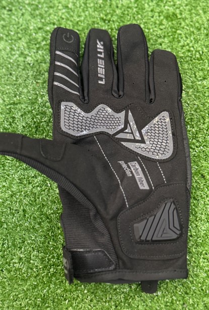 LLG-01碳纖維透氣手套採用聚酯纖維與超細纖維組成,手感舒適而且十分耐用。手背外緣附有碳纖維護具,加強保護性。指關節及掌側設有軟墊保護作防跌車受傷或高速行駛時作檔沙石用途。手指表面附有反光條設計,手掌有防滑物料,食指亦具備觸控功能。多款顏色現貨選擇!