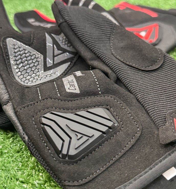 LLG-01碳纖維透氣手套採用聚酯纖維與超細纖維組成,手感舒適而且十分耐用。手背外緣附有碳纖維護具,加強保護性。指關節及掌側設有軟墊保護作防跌車受傷或高速行駛時作檔沙石用途。手指表面附有反光條設計,手掌有防滑物料,食指亦具備觸控功能。多款顏色現貨選擇!