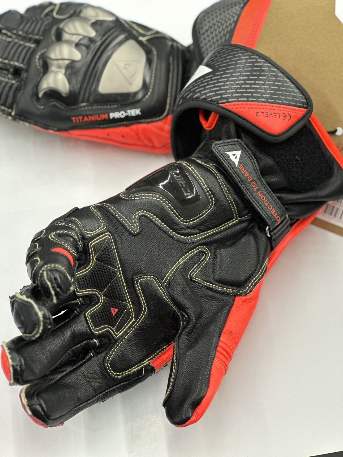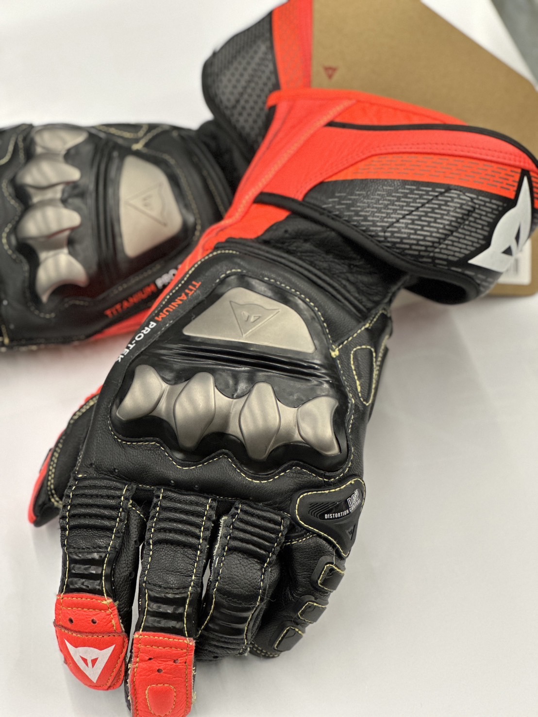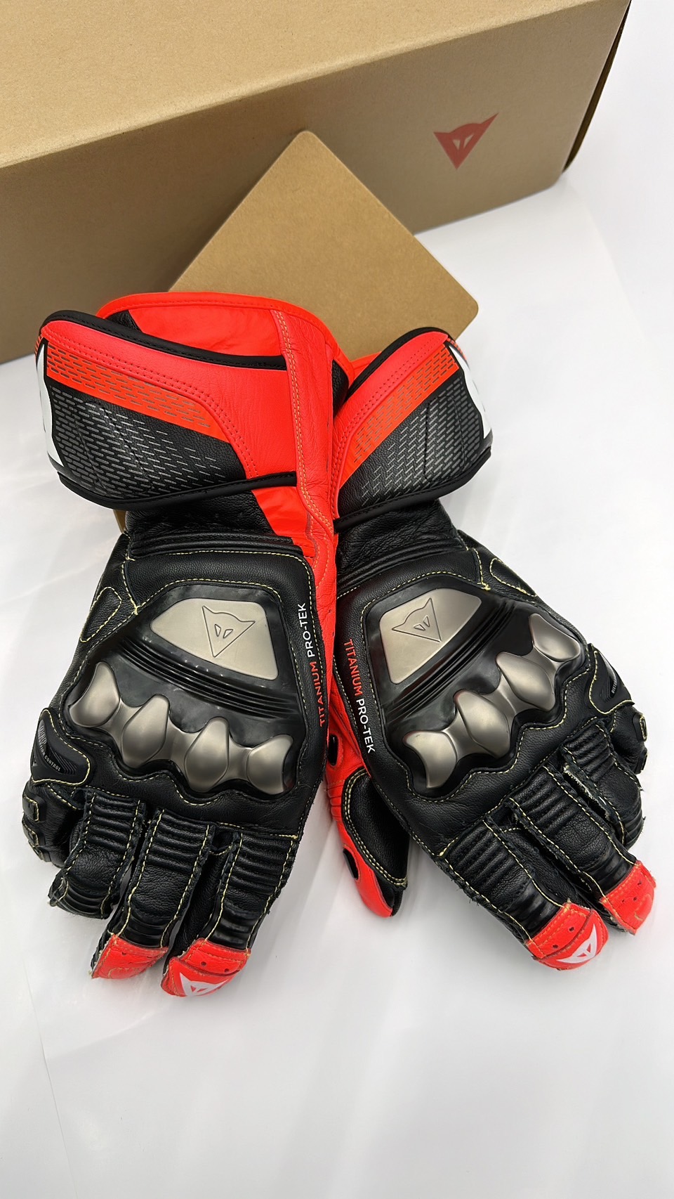 DAINESE 丹尼斯 FULL METAL 7 GLOVES 頂級長版皮革手套 黑/螢光紅