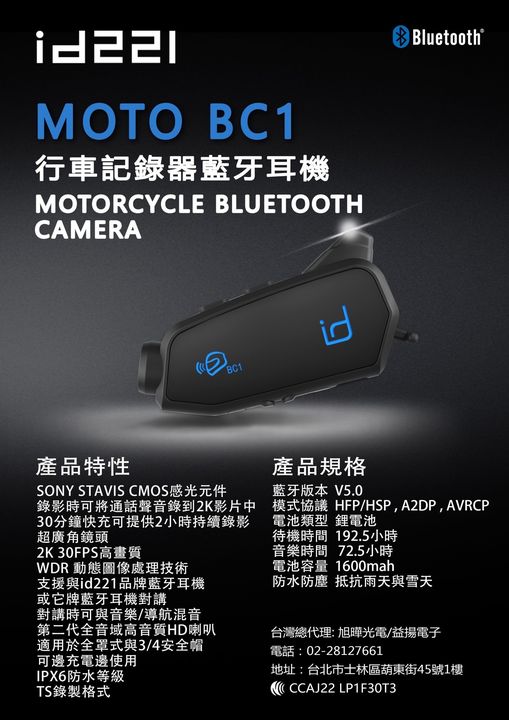 id221-MOTO BC1 行車紀錄器藍牙耳機 (贈32G記憶卡)